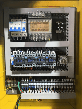 Electrical Control Components The electrical appliance casing is set on the rear of machine base. The electrical control casing Is set on the right of machine base top. The electrical control casing equips the automatic recorder, the time delay adjuster, and five switches, which include power switch, start push button, creasing and cutting push button, stop push button and choose push button